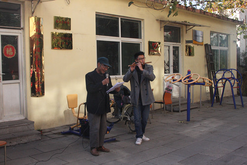 节目在歌曲《好运来》欢快的旋律中拉开了序幕,二胡齐奏《军港之夜》和《赛马》获得好评,老人们伴随着优美的音乐打起了节拍,气氛一下子活跃起来。于洋同学为大家带来的笛子独奏《浏阳河》、《茉莉花》、《沂蒙山小调》,掀起了一阵经典的民族风,动听的曲调充满了每个角落。女声独唱京剧《梨花颂》,精彩的表演获得了大家热烈的掌声。最后,艺术团在《最炫民族风》欢乐的旋律中结束了演出。