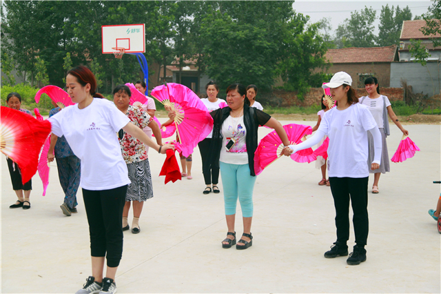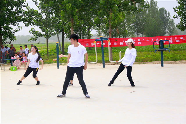 本站讯2016年7月7日,山东艺术学院舞蹈学院派遣一支由学生志愿者组成的8人小分队进入“第一书记”帮包村郓城县黄集乡伟庄村。为开展本次暑期社会实践活动,8人小分队进行了前期排练,成员们精心准备了舞蹈选段。他们首先向村民展示了三支具有专业水准的舞蹈表演,村民们报以热烈的掌声,而后,为满足当地民众的实际需求,志愿者小分队的同学们为其特别编排了一支简单易学的大秧歌舞,并且现场进行一对一教授,这项内容得到了积极的响应,吸引了大批村民的热情参与。同学们耐心地教,村民认真地学,同学们的动作熟练而优美,村民的表演羞涩却质朴,最后,踏着欢快的鼓点,同学们带领村民共同跳起一支热情奔放的山东大秧歌。