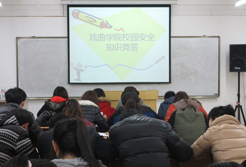 本站讯为了提高学生安全意识,加强安全教育力度,增强学生自救自护能力,2013年3月29日晚6点30分,戏曲学院在学院多媒体教室成功举办了 “校园安全知识竞答”主题教育活动。