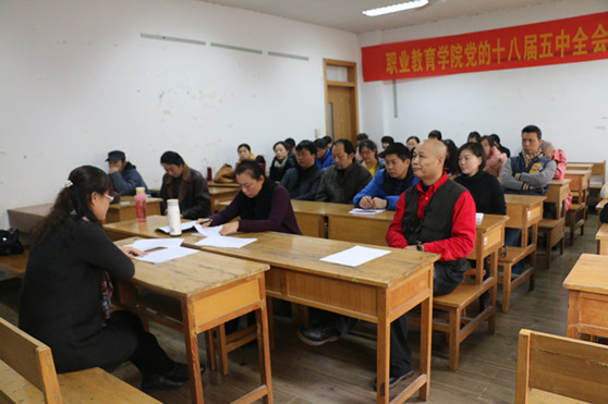 11月20日上午,职业教育学院贯彻落实党的十八届五中全会精神宣讲会在文东校区举行。职业教育学院党总支书记姜华作专题宣讲。学校教科研党总支书记吕春玉、职业教育学院全体教师、学生党员以及部分学生代表参加了宣讲会。宣讲会由职业教育学院院长刘光主持。