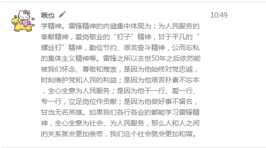 在雷锋宣传月期间,我院借助微信这一广受欢迎的新媒体平台,开办了“学雷锋树新风”宣传专栏,专题宣传弘扬雷锋精神,受到了广大同学的支持与关注。