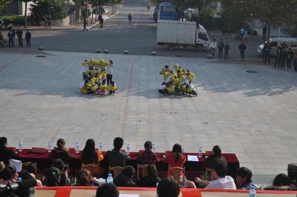 本站讯为贯彻落实校党委﹑团省委的有关部署和我校2012年共青团的工作要点,丰富校园文化生活,竭诚为学生们的成长成才服务,由我校团委主办,舞蹈学院团总支承办的“喜迎十八大·相约十艺节·舞动我青春”第五届校园啦啦操比赛于11月6日下午2点30分在阶梯广场激情上演。学生处副处长郑华丽、校团委书记苏茂兴、团委副书记孔宪坤、舞蹈学院党总支书记郭秋华、党总支副书记段晓君、职业学院党总支书记马磊及各二级学院团总支书记、辅导员到场观看了比赛。