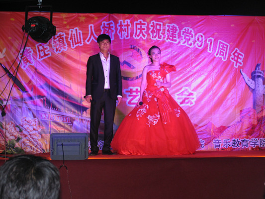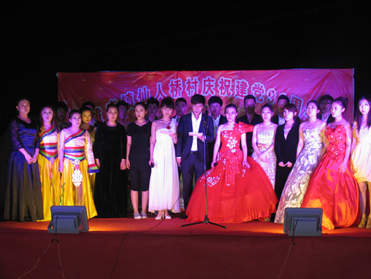 莱芜市黄庄镇地处大汶河源头,仙人桥村北靠棋山,坐落在绿色之中。社会实践服务团成员深入村民家中,开展实地调研,切身感受社会主义新农村建设带来的巨大变化。晚上社会实践服务团成员为黄庄镇仙人桥村庆祝建党91周年活动奉献了一场精彩的文艺演出。黄庄镇党委书记、镇长、镇党委副书记、仙人桥村党支部书记及近千名村民观看了演出。