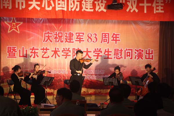 2010年7月30日,济南市庆祝建军83周年、国防建设“双十佳”表彰大会暨山东艺术学院音乐学院大学生慰问演出圆满成功。出席本次演出的领导有市委常委、济南警备区政委晋争鸣,副市长齐建中,济南警备区司令员胡少平出席会议。