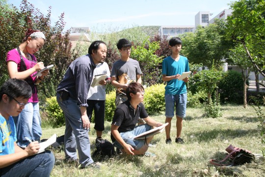 写生过程中,专业老师引导同学们不仅要学会用眼睛观察,更要学会用脑子思考,并着重锻炼了同学们的色彩感觉。针对同学们在写生时面对丰富的自然景观信心不足的问题,专业教师手把手教给学生在具体绘画过程表现自然风景的技法,并鼓励同学们大胆尝试,帮助大家认真改画。这极大地拓宽了同学们的视野与思路,激发了大家的创作热情。在老师的指导下,同学们用手中的画笔在速写板上描绘出了对美丽校园的热爱。