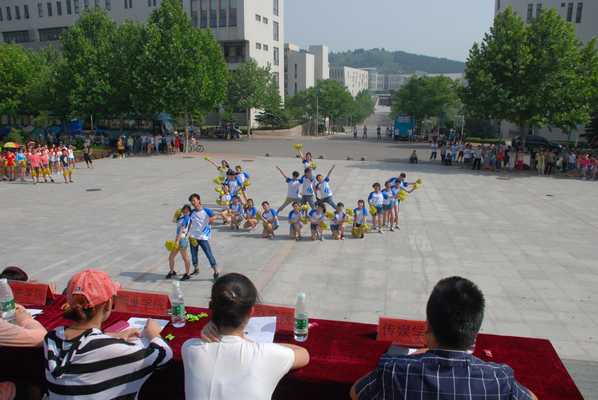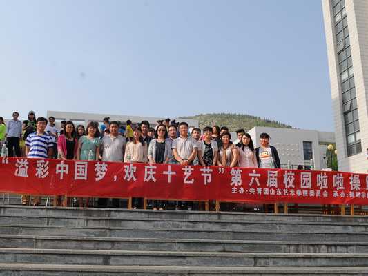 由山东艺术学院团委主办,山东艺术学院舞蹈学院团总支承办的“溢彩中国梦·欢庆十艺节”第六届啦啦操比赛于5月21日下午2点30分在长清校区举行,长清校区9个学院、10支代表队近400名学生在一个小时的比赛中,舞动绚丽的青春,点燃了山艺学子们的激情。校团委苏茂兴书记、舞蹈学院相关领导及各二级学院的团总支书记、辅导员老师们观看了比赛,各二级学院的学生会主席担当了比赛的评委。