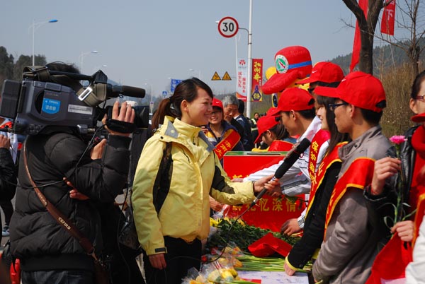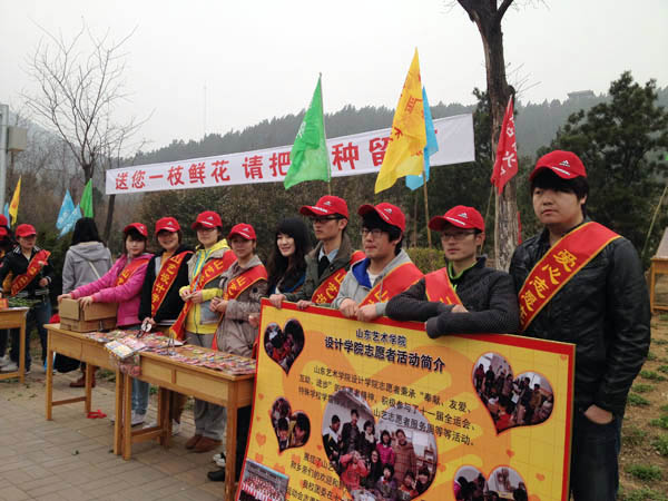本站讯2012年4月2日是清明节假期第一天,设计学院团总支老师带领十二名大学生志愿者来到济南市林场羊头峪长生林,与其它驻济高校近百名志愿者共同参加了由济南市园林局主办的“志愿济南和谐园林 送您一支鲜花 请把火种留下”大型主题宣传活动,这是设计学院志愿者第二次参加该活动。