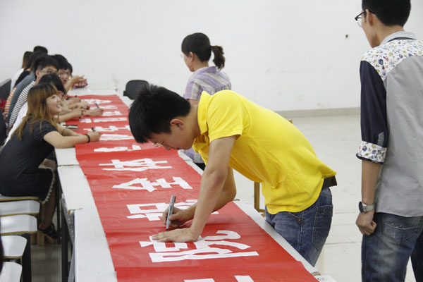 活动中刘玉泉院长对毕业生四年来的学习情况作了总结,充分肯定了同学们的成绩,并对毕业生的未来发展做了重要的指导性建议。党总支书记荆雷向毕业生温情叮嘱:“设计学院是你们永远温暖的精神家园”。活动最后,毕业生们在“设计学院祝全体毕业生前途似锦”条幅上纷纷签下自己对母校的祝福。