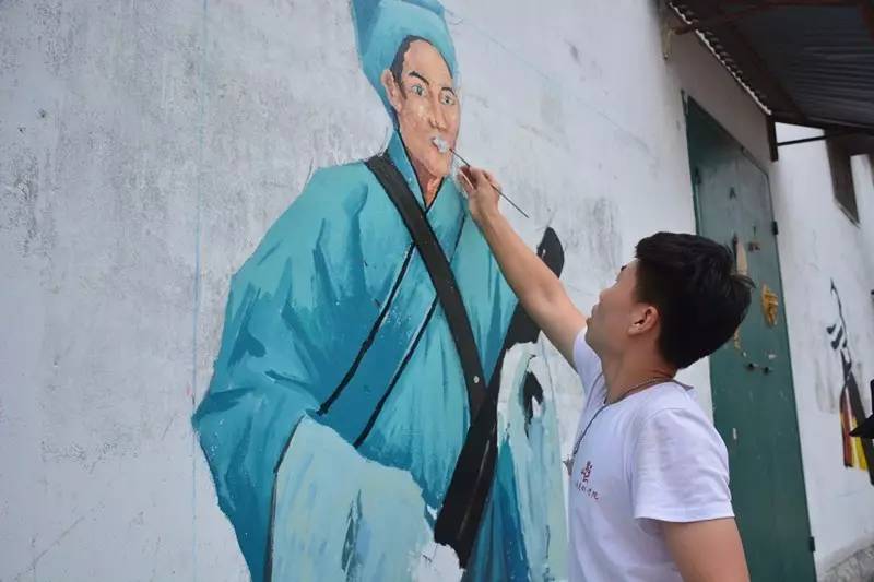 抵达实践活动地点后,实践团先对当地环境进行考察,计划出九面空白墙体进行绘画。了解到当地的戏曲文化,并结合当地地域特色,实践团队员精心设计墙绘内容、明确分工。八天里,实践团的志愿者们以丙烯、画笔为绘画材料,以戏曲特色、水浒好汉为创作元素,以乡土人文为主要内容完成了九面墙体的绘画。墙绘以独特的方式传播文化,美化了乡村,也将艺术融入到农村生活之中,助力新农村建设。墙绘工作从图案挑选设计到绘制完成,每一步都凝聚了墙绘组辛劳的汗水。此次墙绘成果受到了大路口乡村民们的一致好评,同时也得到了大路口乡长等领导的莅临观察指导,并对我院大学生社会实践活动给予了高度的评价。