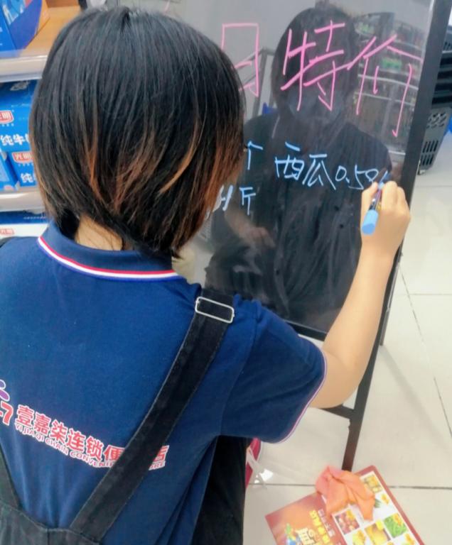 除了收银,平日里一些写小黑板,更换价格等琐碎细小的工作也是需要我来完成。在我工作的期间,老板因为一些事情一个周不在店里,只有我和另一个兼职的小姑娘。我们俩个每天的工作时间由两班倒变成了从早上一直到晚上。一开始我们都很担心,担心会出现各种问题无法应对。事实证明问题是一定会有的,而解决问题才是最重要的。