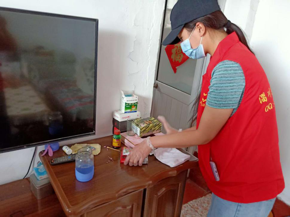 第三户是一位一生与精神疾病抗争的奶奶,在给她剪指甲时,她望着我的目光中柔和中却又充满着探究。我放慢手中的动作,一遍又一遍的说着:“奶奶不怕,我们把指甲剪短点这样才卫生呢”,这一刻我竟然看到她笑了。