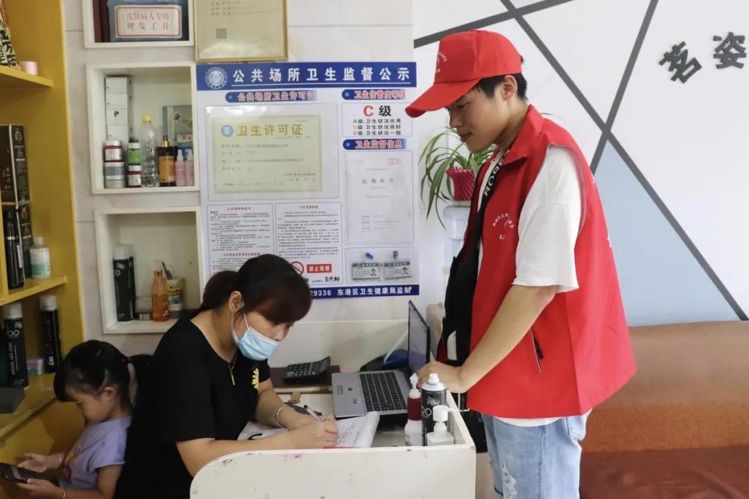 跟随着社区工作人员走进沿街商户,作为青年志愿者,小组三人除了要向商户普及创城的相关事宜、对他们提出的问题进行解答之外,还要对此次活动进行记录。三个人,三种行动,殊途同归。虽然我们有着各自的行动指向,但我们的目标都是散播城市文明,让大家在志愿者们的帮助下中感受到文明的新风,为城市文明共同努力。在实践的过程中,不论是商家对于创城向我们提出的一些疑问,还是我们对这些问题进行耐心的解答,创城活动,在真诚和热情的对话中,让这座港城变得更有温度,也让每一个人都意识到文明正在慢慢融入到港城的发展脉络中,成为城市引以为傲的底色和最光鲜亮丽的名片。
