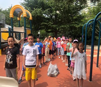 我们在这几天里,每天都有新鲜的“快乐源泉”涌现,留下了很难忘的回忆。有时候是孩子们唱跳英文儿歌和韩文儿歌震耳欲聋,不管是小学高年级的孩子还是低年级的孩子,都在一起挑战没有尝试过的活动增添了和在学校里完全不同的乐趣,体验了不一样的欢乐课堂;还组织了去小区里画井盖的活动,每个小组都分到了一个井盖,开始了自己的天马行空的创作,和大人不一样,他们有着仅属于自己的想法,即使有因为想法不和而险些多了小矛盾,但不一会就和平解决了,合力一起把一个井盖画出小组的色彩。