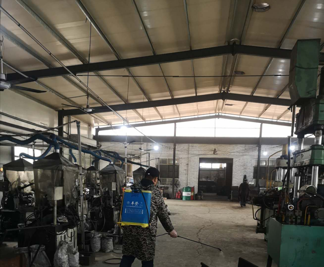 主管:基本上工厂内所有工作区域都张贴了警示标语,也对员工和外来人员起一个温馨提示的作用,毕竟特殊时期,还是要提高警惕。同时也为员工准备了标准医用口罩,规定上班必戴口罩;另外使用无接触式测温计,早上和下午上班即测体温;还有比如:厂区定期消毒杀菌,外来人员及车辆消毒登记等,这些防控工作都是必不可少的。