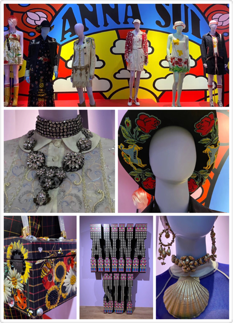 虽然有兼职代课的工作经验,但展览讲解、美术馆夏令营和社区活动是从未接触过的工作类型。想象中的讲解导览,是背熟展品内容、含义、讲解词来介绍展品就可以完成的工作,但是这次真正接触到这份工作后才懂得,任何一份看似轻松的工作背后,其实都是由严密准备,精心练习来支撑的。AnnaSui展览是服装展,这是我从未涉猎过的专业内容,要学习的内容很多,小小服装展大大知识量。所以在讲解前的准备中我按照讲解的路线走了一遍又一遍,熟悉场馆展陈。将每一套服装、配饰从整体到细节进行拍摄,然后按主题内容分类,再对比搜索资料进行学习。在整个过程中受益良多,从迷惑到掌握,不仅了解AnnaSui设计师的求学经历,工作经验和设计历程,也丰富了关于服装内容的知识量,比如大自然是艺术创作最好的灵感源泉;面料不仅可以做季节的划分还可以表达主题,而图案与纹饰,肌理与质感也是表达情绪的重要方式。这点也可以用到以后的创作中。印象最深的是Mood Board情绪板,顾名思义将情绪可视化。在进行艺术创作中起重要作用,情绪板就像一把钥匙,解锁灵感。它是巧妙寻求灵感,打磨创作过程中的重要搭档。