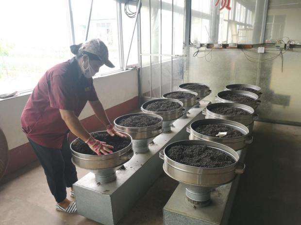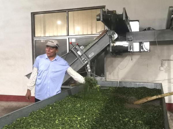 中午将茶叶进行几个小时的晾晒,下午进入了制茶的生产车间,先参观了一下整个制茶的顺序。接着跟随师傅一起着手实践起来。刚进入生产车间大概十分钟后,脑海中浮现了一首诗“锄禾日当午,汗滴禾下土。谁知盘中餐,粒粒皆辛苦。”制茶的车间是蒸笼一样,左边机器不停的翻滚着茶叶,右边输出口要人工不停翻斗,室内温度远远超过夏日炎热的室外温度。我在短暂的时间里都汗流浃背,可想而知平日里车间师傅们的辛苦更是千倍啊,这让我深刻体会到每一项工作的辛苦。