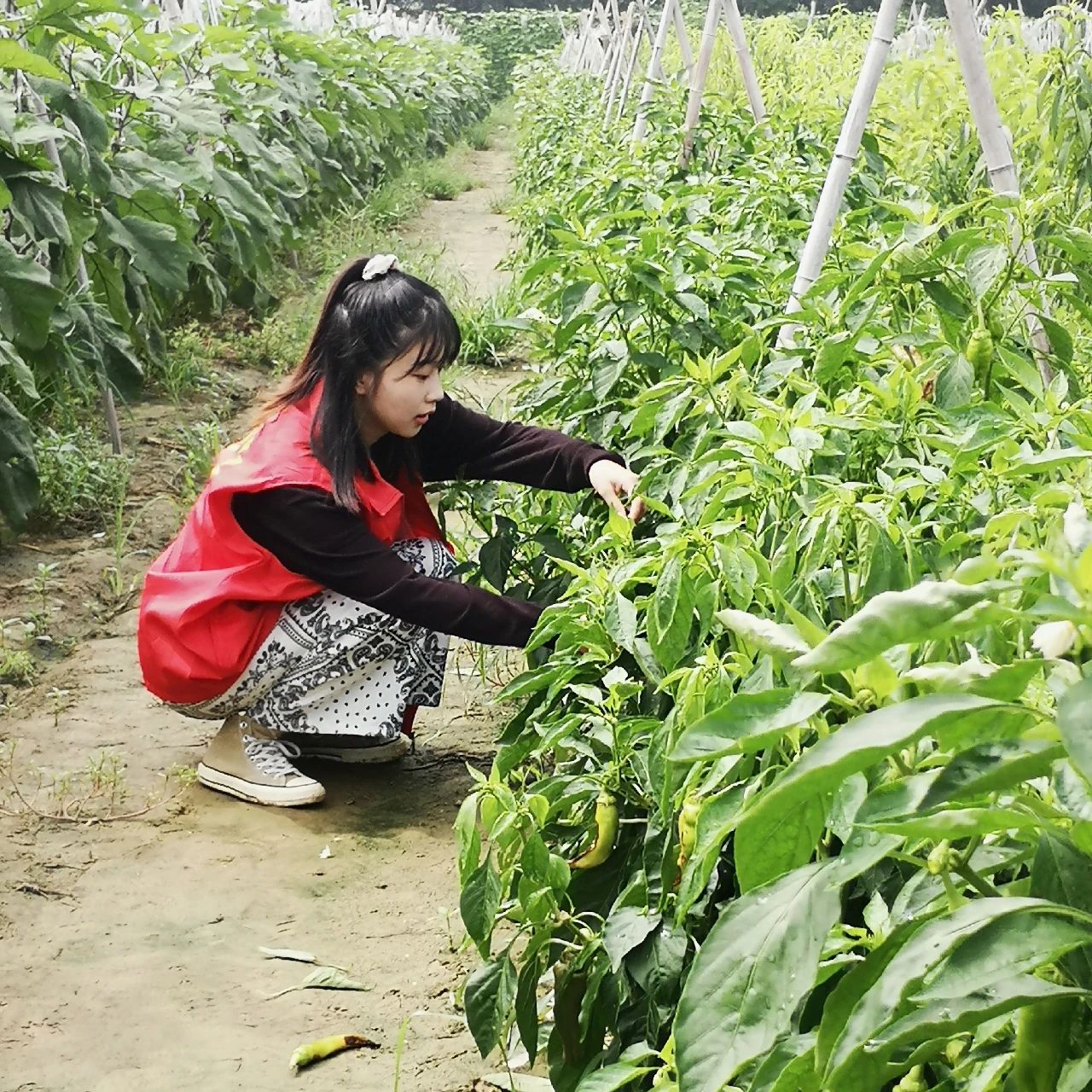 我在服务队里的主要工作是帮助农民采摘农作物和清理杂草。农田里的茄子经过辛苦栽培终于花落果熟,但采摘茄子也是一项艰难的任务。我刚开始采摘茄子的效率很慢,茄子的茎部粗硬,即便是用剪刀采摘也需要很费力才能摘下来。茄子叶柄处有细小的刺,一不留神就会扎进肉里。当地的农民耐心地教我如何采摘茄子,在剪茄子茎时,用另一只手抓住茄身左右转动,茄子就轻松地下来了。随着一次又一次的实践,熟能生巧,我采摘的效率也逐渐提高。果蔬基地里的杂草在我和当地村民的共同努力下终于清理完毕,各种农作物长得更加枝繁叶茂。在这片洒下自己汗水的土地上,看到果树、蔬菜蓬勃生长的样子,我感受到作为一名志愿者的骄傲自豪。