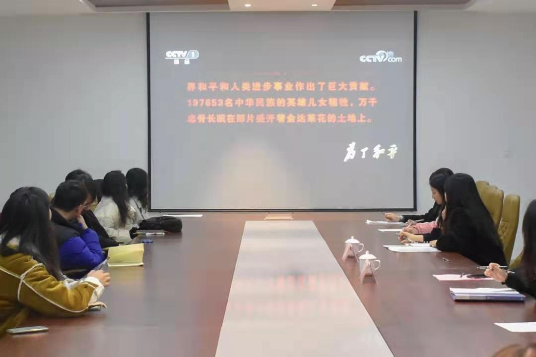 为深入贯彻落实习近平总书记在纪念中国人民志愿军抗美援朝出国作战70周年大会上的重要讲话精神,大力弘扬抗美援朝精神,教育引导研究生厚植爱国主义情怀,12月4日,第十五届研究生会组织全体成员集体观看了大型电视纪录片《为了和平》。