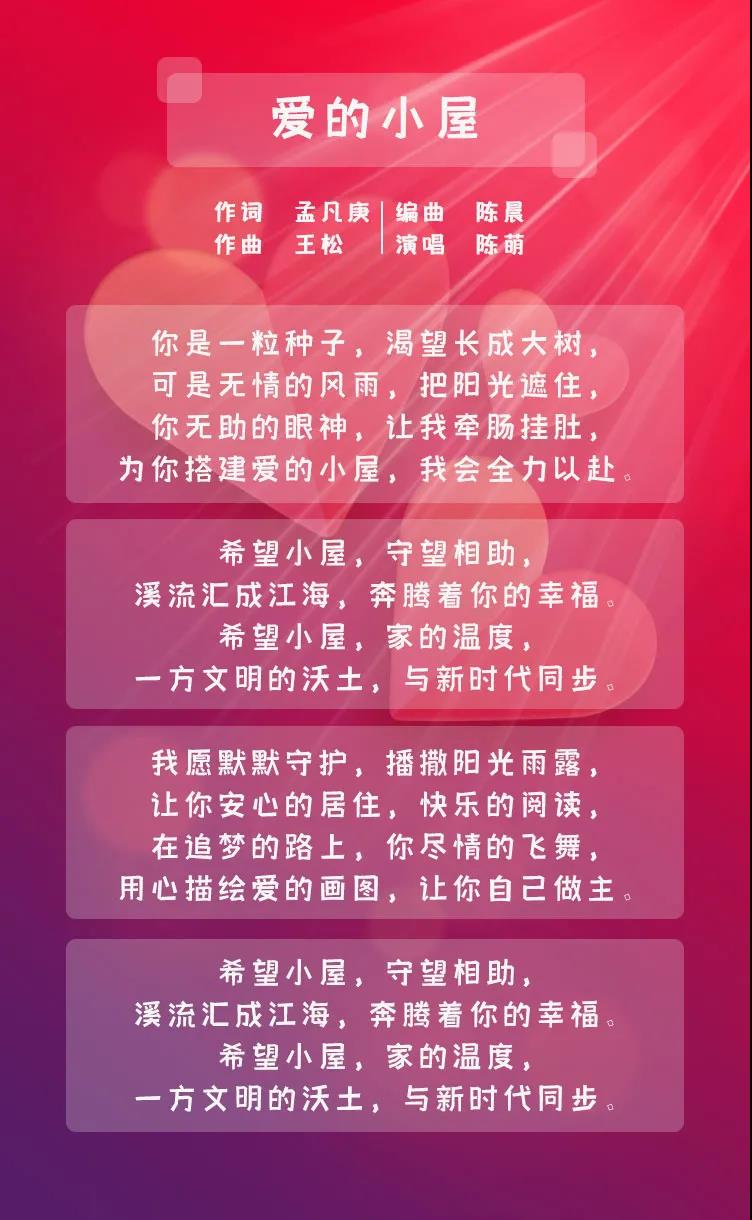 由章丘籍青年音乐人创作,共青团山东省委出品的“希望小屋”儿童关爱项目主题MV《爱的小屋》,已于一月份正式发布。