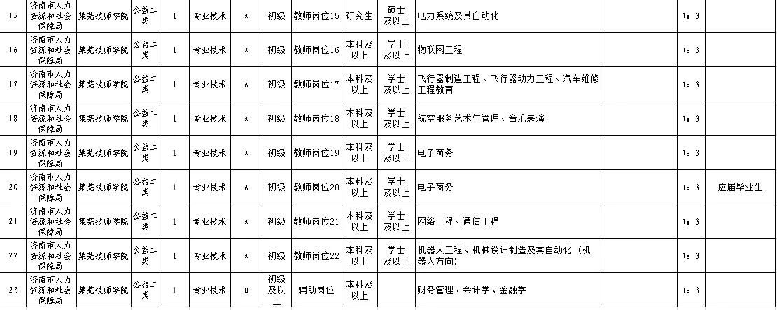 通过济南市人力资源和社会保障局网站(http://jnhrss.jinan.gov.cn)和莱芜技师学院网站(http://www.lwjsxy.com)面向社会发布招聘信息。