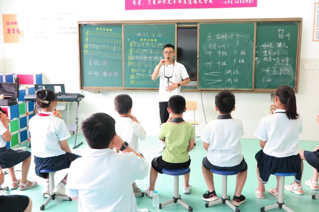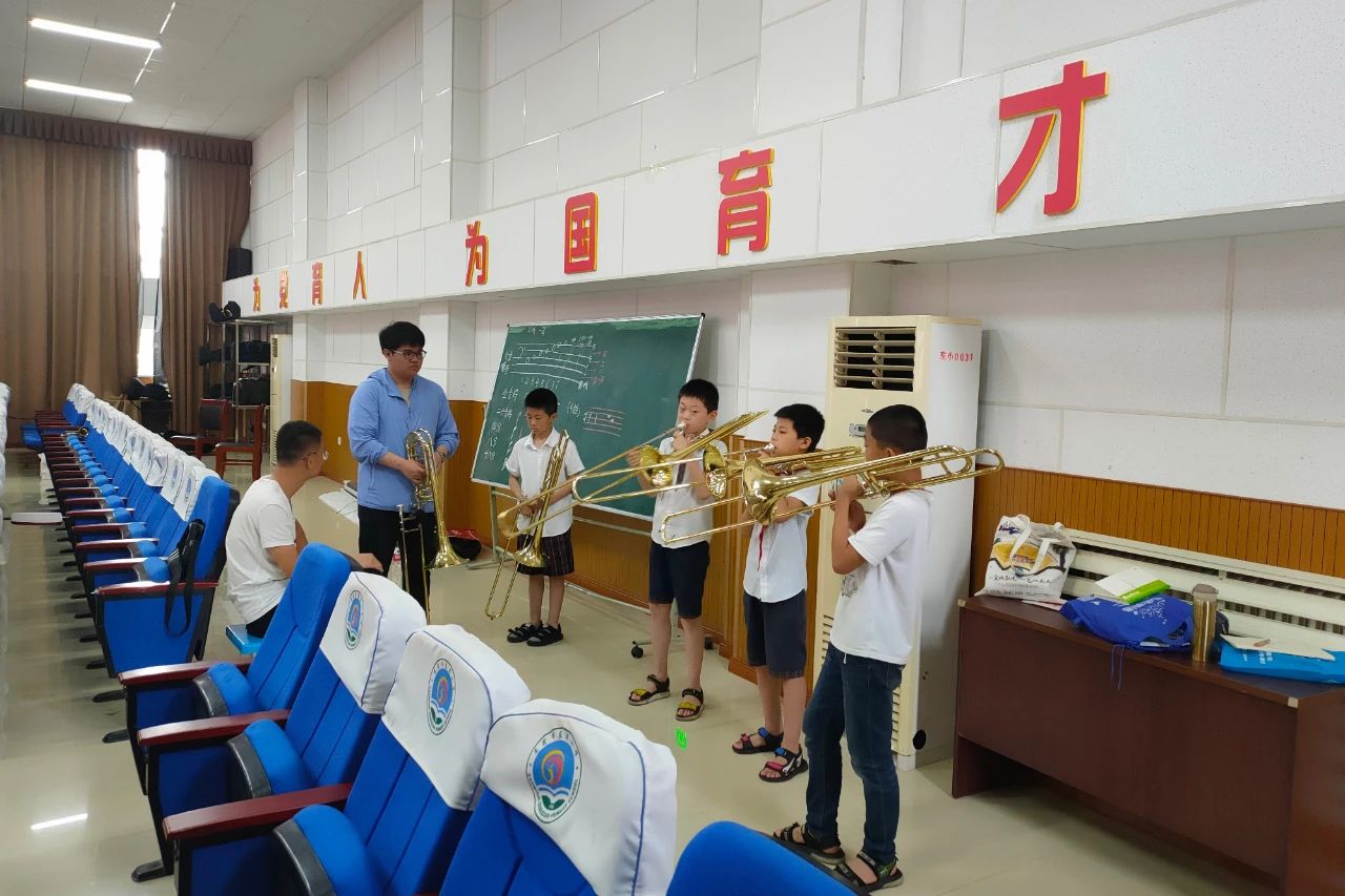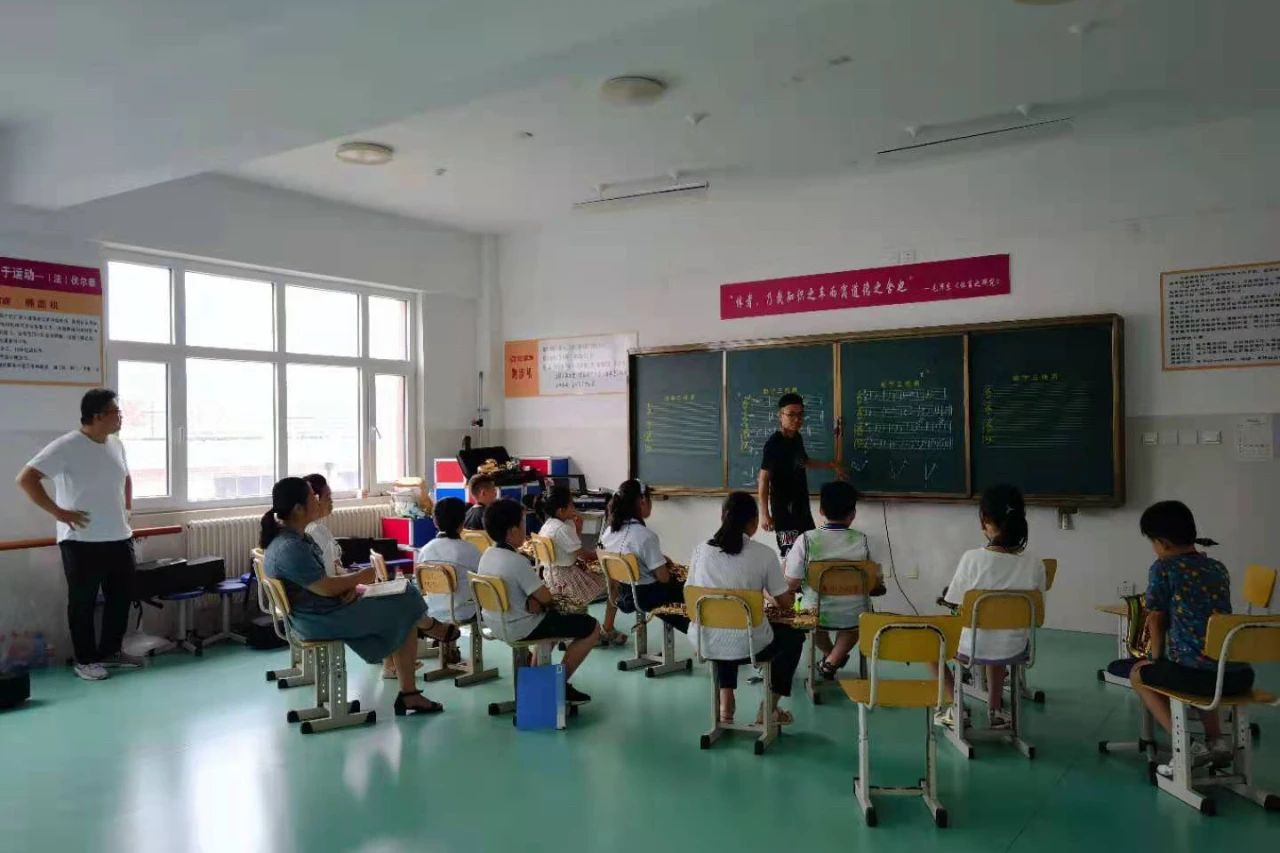 开营仪式后,支教活动随即展开,包括小号、长笛、圆号、单簧管、长号、打击乐、萨克斯专业在内的“泉城义工”大学生艺术团的同学们也正式担任起了老师们的责任。在每一间教室中,都能看到他们孜孜不倦的身影,他们鼓励着孩子,为孩子们传授知识、点拨技艺,一遍又一遍的给孩子们示范、排练;孩子们也都认真跟随老师的指导,逐步改正技术上的问题,浑厚悠扬的管乐声回荡在东关小学校园的每个角落。