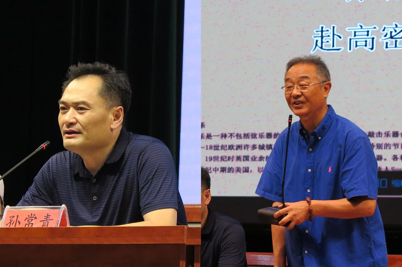 聂立家讲到,东关小学知名校友、国家一级指挥、中国音协管乐学会主席、中国人民解放军军乐团原团长、山东艺术学院交响乐团客座指挥于海先生向学校捐赠价值数十万元的管乐器设备1套,此次支教活动也是为推进于海先生情系家乡教育、不忘回报桑梓善行义举的重要举措。聂立家对学生家长能够支持此次活动表达感谢,对开展美育教育让艺术生活化、生活艺术化提出了希望。