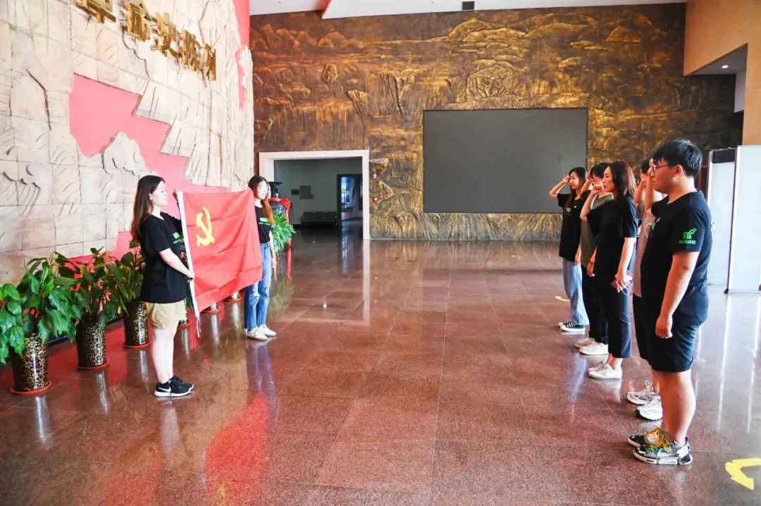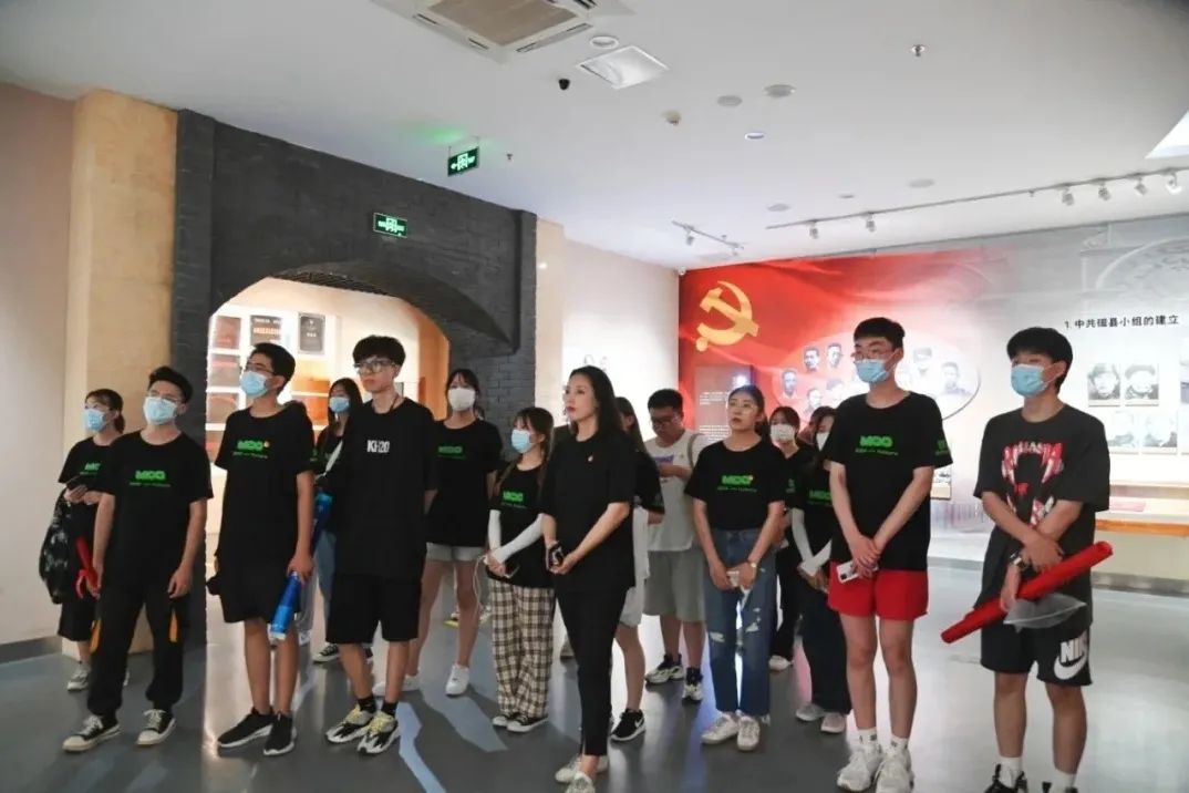 暑期实践团成员怀揣敬畏之心,来到冀鲁豫边区革命历史陈列馆学习,先后参观了六大主题展览,重温了革命岁月艰苦奋斗历程。实践团的党员代表们追寻革命先辈的历史事迹,面向党旗,重温入党誓词,在党旗下净化心灵,牢记共产党员的初心和使命。刘宁镇长带领实践团参观大黄集镇安陵革命历史博物馆、定陶战役大杨湖指挥部遗址。在刘宁镇长的生动讲解下,实践团成员们切身感受到革命战争年代先辈们抛头颅洒热血的不屈精神,领略到他们在艰苦的环境下运筹帷幄的强大气魄。随后,实践团的全体成员与大杨湖村党支部及老党员代表共同座谈交流党史学习教育。通过四位50年功勋老党员代表的亲身讲述,领悟了共产党人对人民的无限深情,对理想的执着忠诚,也激励着传媒学子在学习党史中寻根铸魂,把汲取的智慧与经验转化为推动学习与工作的强大精神动力。