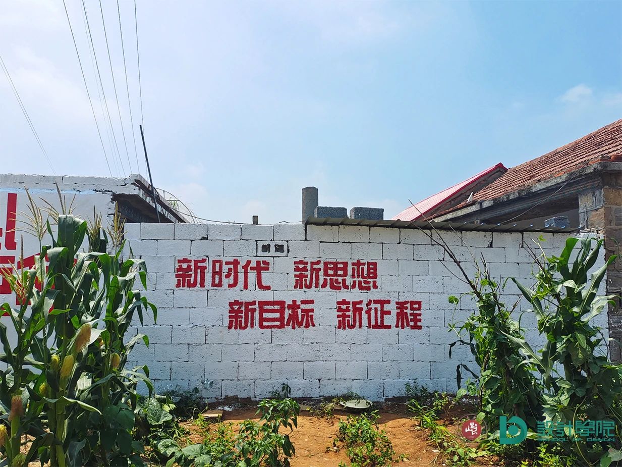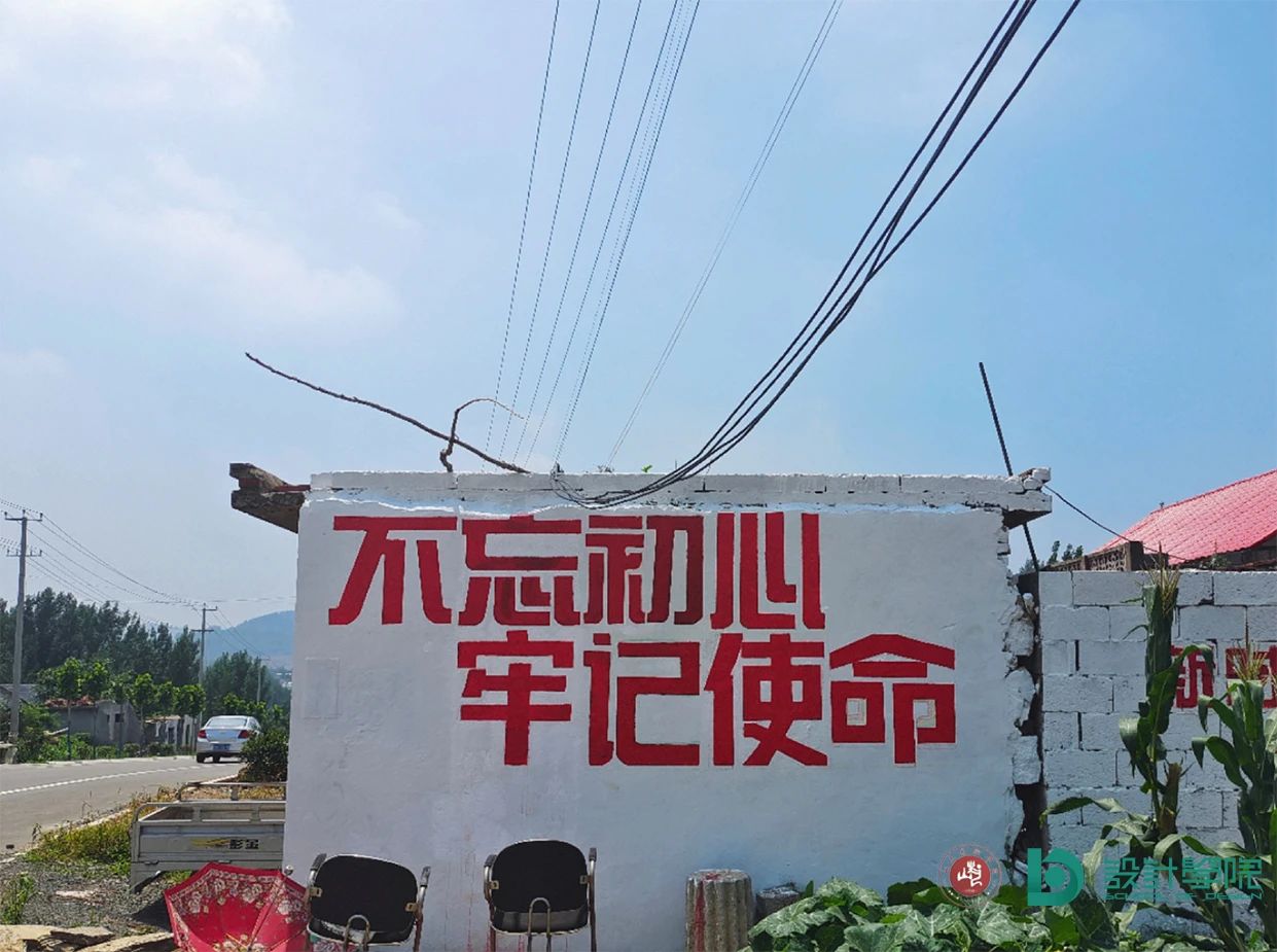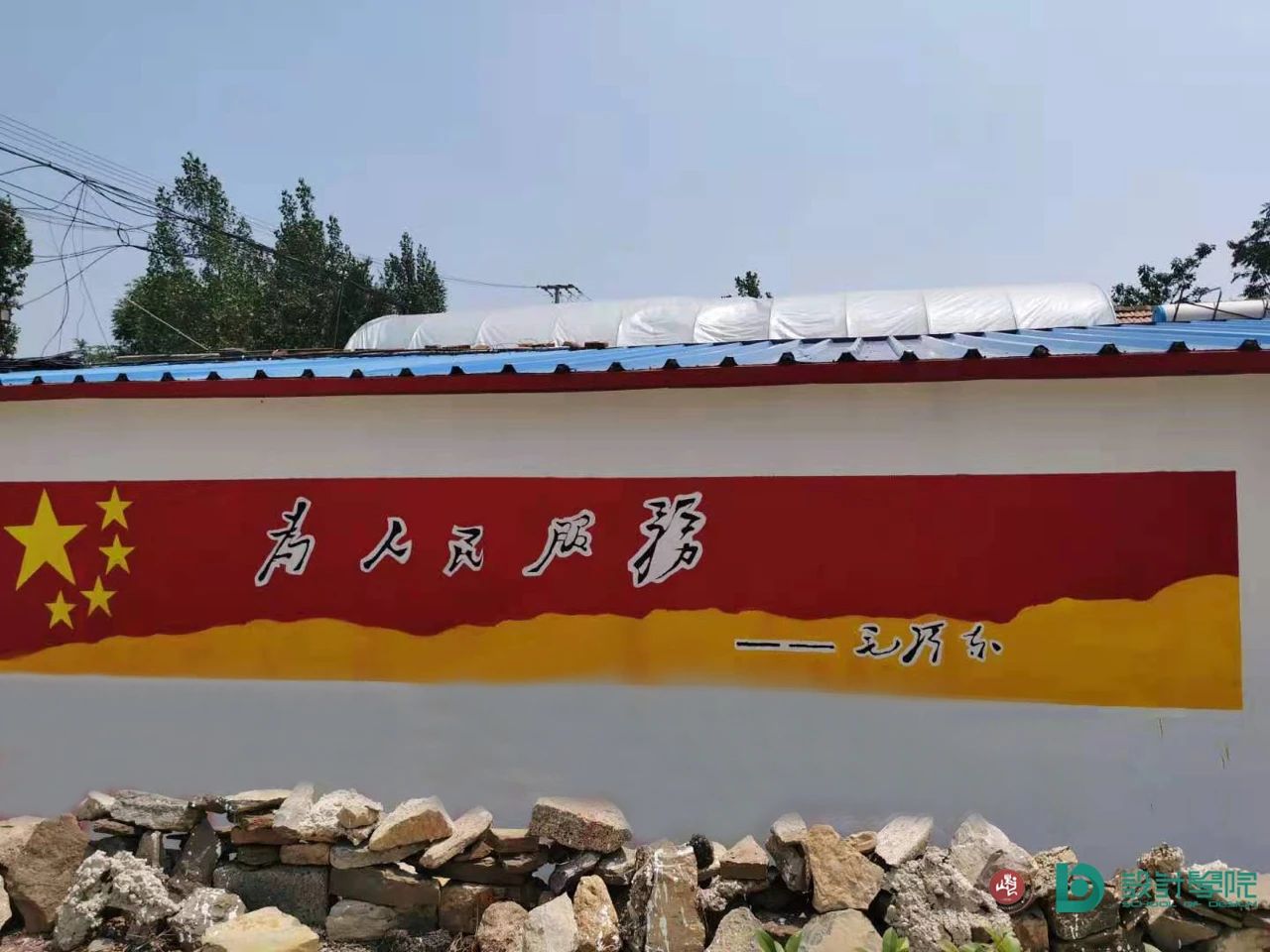下村乡是革命老区,境内红色文化厚重,上大炉村是临沂市第一批红色堡垒镇(乡)、村 。八路军临郯费峄四县边联支队成立旧址就位于上大炉村,是临沂市第二批重点抗日战争遗址。借此机会,实践团同学走访了支队旧址,八路军115师在山东开辟的第一个抗日革命根据地就位于抱犊崮山区;党和国家领导人刘少奇同志曾在这里对鲁南抗战工作进行调研,开国元帅罗荣桓同志曾在这里战斗和生活。通过探访,同学们进一步感受到了那个年代革命工作的艰辛与不易,激发了同学们对传承红色精神的设计灵感。大家结合探访感悟和整个大炉村的民风、村貌进行考察,设计,完成了以党史、国史等新时代主旋律为主题的墙绘。在八路军115师旧址正对面的村口,毛泽东题词的“为人民服务”五个苍劲的大字,彰显了新时代青年暑期社会实践的心声;八路军曾经吹响的号角再次在上大炉村中吹响,“雄关漫道真如铁,而今迈步从头越”再次号召新时代青年为实现中华民族伟大复兴的中国梦奋勇向前;“不忘初心、牢记使命”同学们用艺术之笔宣扬了新时代、新思想、新目标和新征程的责任担当……