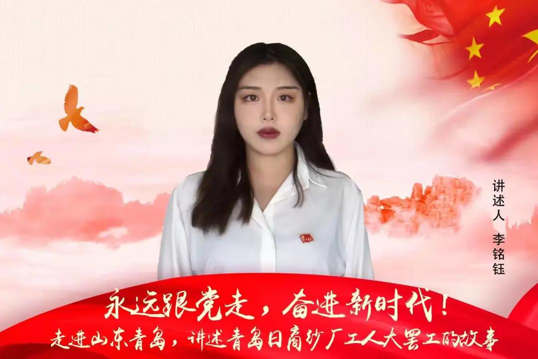 永远跟党走,奋进新时代!大家好,我是山东艺术学院国际艺术交流学院学生党员李铭钰,我在山东青岛,为大家讲述青岛日商纱厂工人大罢工的故事。
