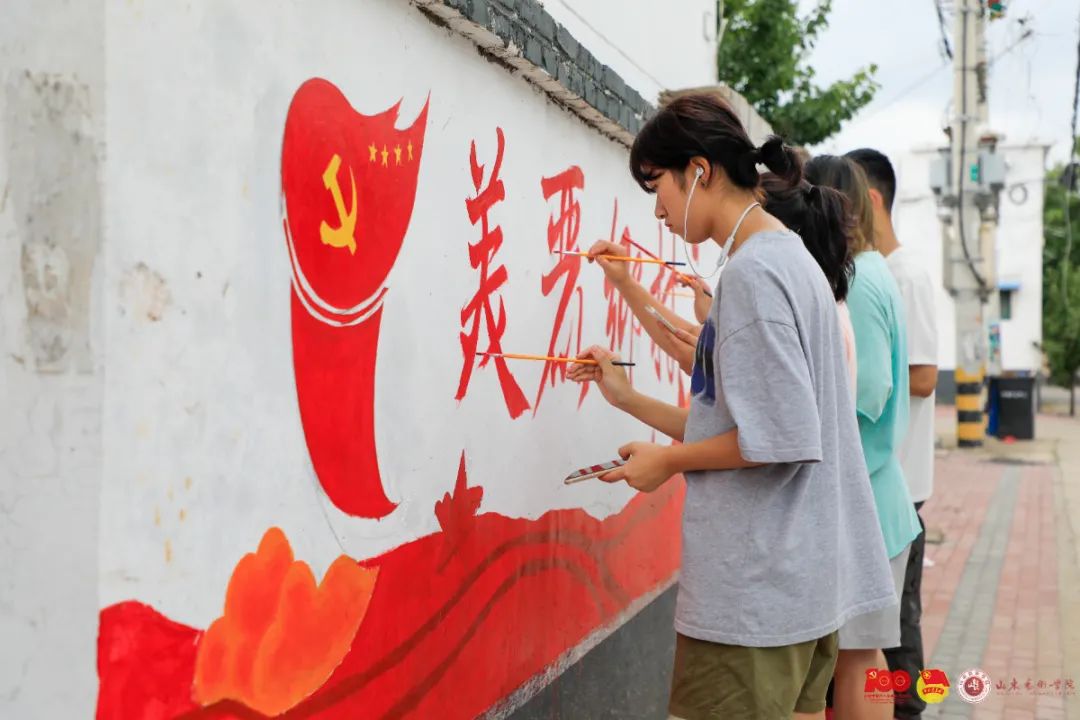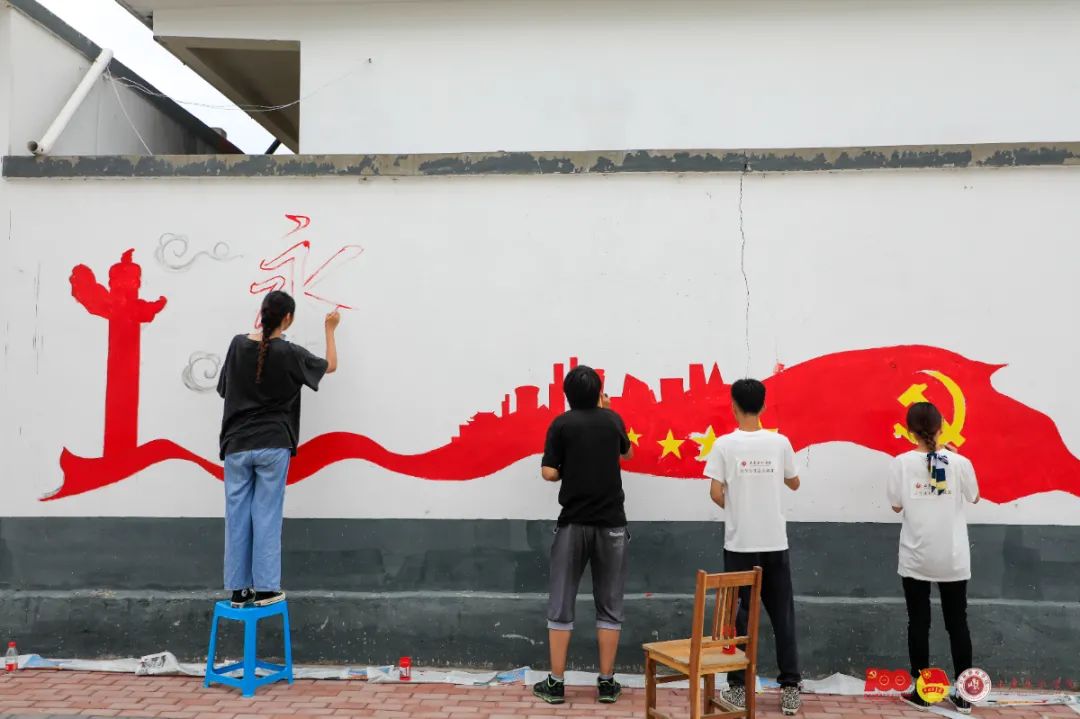 为将党史学习教育走深走实,引导大学生切实做到“学史力行”,以自身的专业特长助推美丽乡村建设,实现理论、专业与实践三者的充分结合。7月27日,山东艺术学院大学生暑期社会实践团在枣庄市薛城区西丁桥村开展“青绘美丽乡村,助力乡村振兴”墙绘活动。本次实践活动特别邀请设计学院教师张恒旺担任墙绘指导教师。