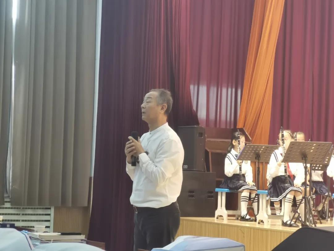 学员家长杨春学在仪式中表示,很高兴能够参加此次管乐团集训,在不长的集训时间内见证了孩子们取得了惊人的进步。感谢聂立家先生对孩子们的专业指导以及音乐学院支教团同学们无私奉献、悉心教导,他为孩子能够从小有机会学习管乐而自豪。