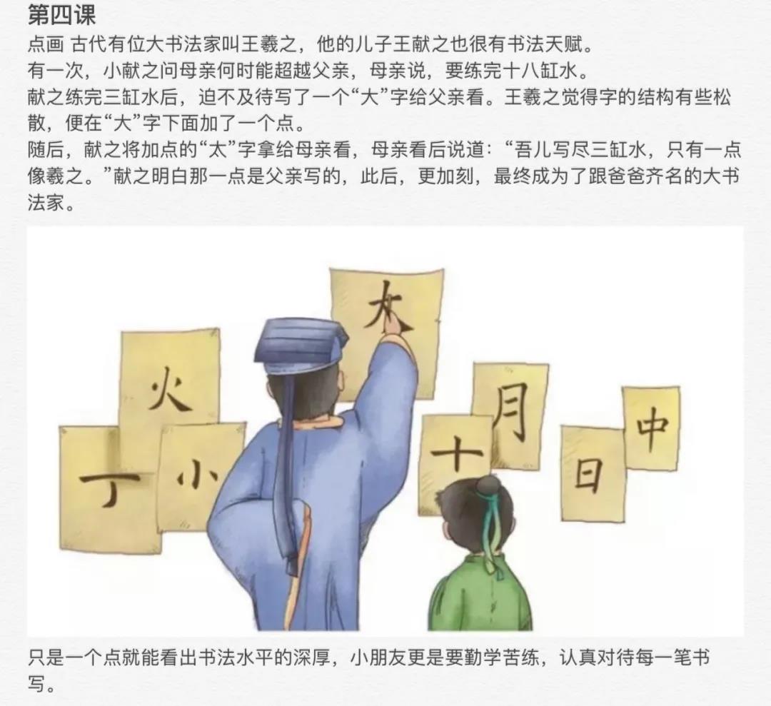 小孩子们接触书法的时间并不多,所以如何能够让孩子们快速喜欢上书法是非常重要的。课堂中采用生动的故事介绍书法,可以极大地提高了孩子们对书法的喜爱程度。