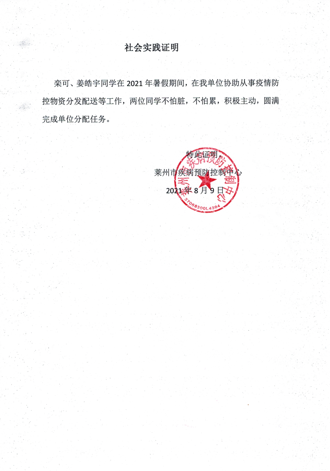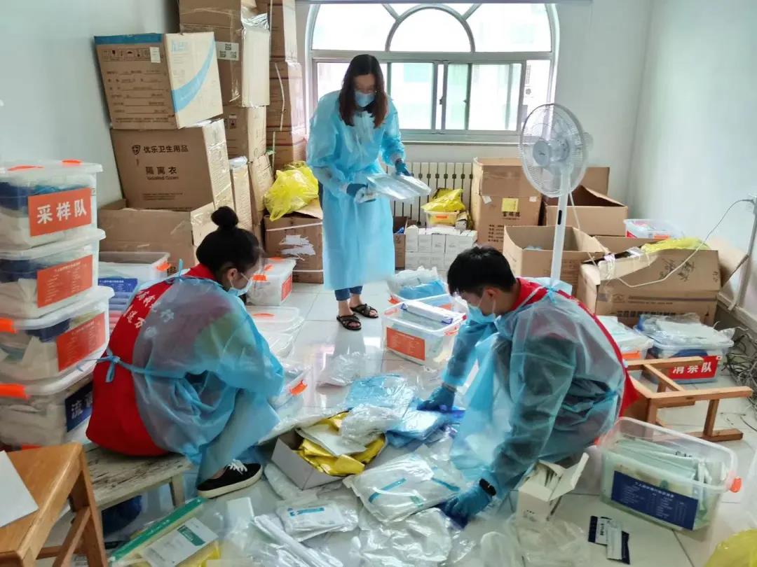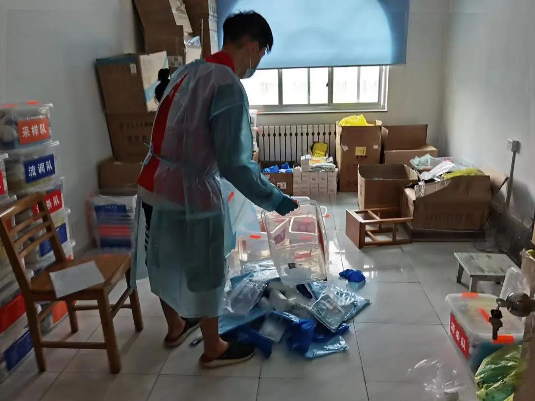我们作为新时代的青年、党员发展对象,勇于担当,报名成为莱州市卫生局防疫工作小组的一名后勤保障消杀人员,负责整理分发每个外出小组的医疗物资箱,协助医院的医护工作者进行全民的核酸检测工作。虽然37℃的高温,但必须穿着不透气的防护服,不一会防护服里已然是汗流浃背,明白了奋斗在一线的医护工作人员是多么不容易。