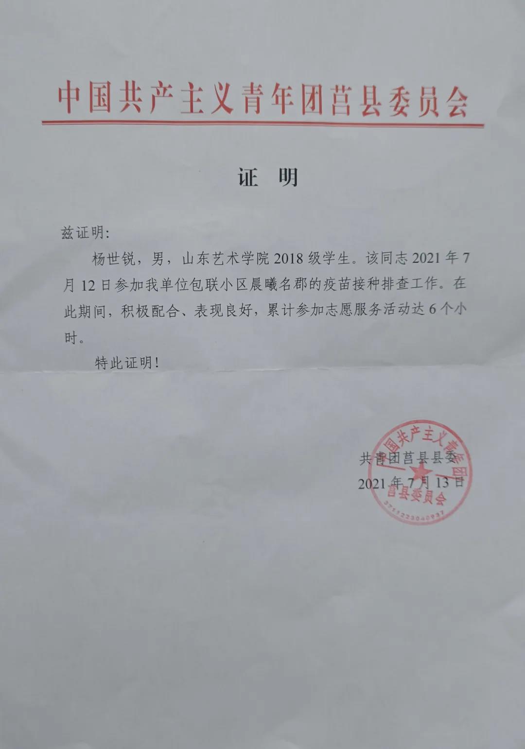 入党积极分子、2018级绘画(鉴定与修复)专业杨世锐前往日照市莒县晨曦名郡小区,在共青团莒县委员会的统一组织下,20余名青年志愿者挨家挨户走访摸排未接种新冠疫苗人群并进行登记,确保不漏一人一户,应接尽接。