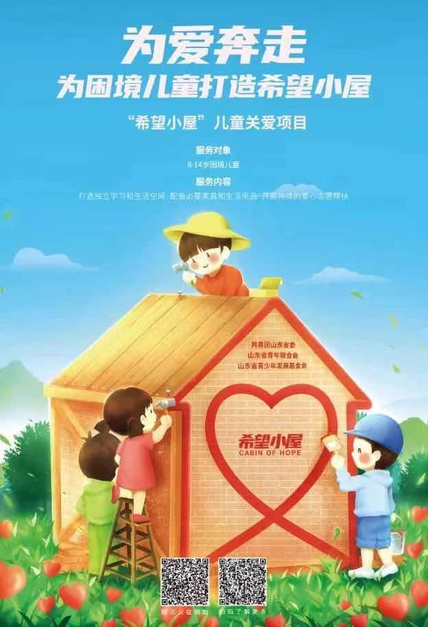 2020年6月,在共青团山东省委、山东省青年联合会、山东省青少年发展基会的共同努力下,“希望小屋”儿童关爱项目全面启动,并计划三年内面向全省无独立居住和学习环境的8至14岁困境儿童,建设1万间“希望小屋”,这不仅仅是回应困境儿童之所愿,更是一份承诺。