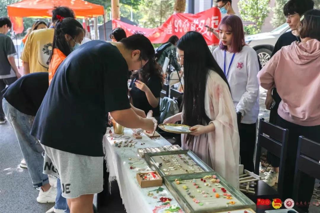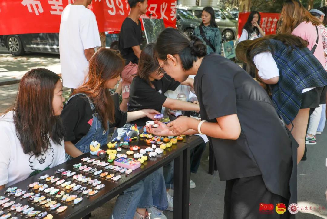 自上午10时许,校团委携手设计学院、书法学院在食堂门口进行活动地推,设计学院“创青春”、“正青春”,书法学院“翰墨云章”3支志愿者服务团队将学生自己创作的陶艺、画作、手工艺品、书法作品进行爱心义卖,所筹得的善款悉数捐给山东艺术学院“希望小屋”。