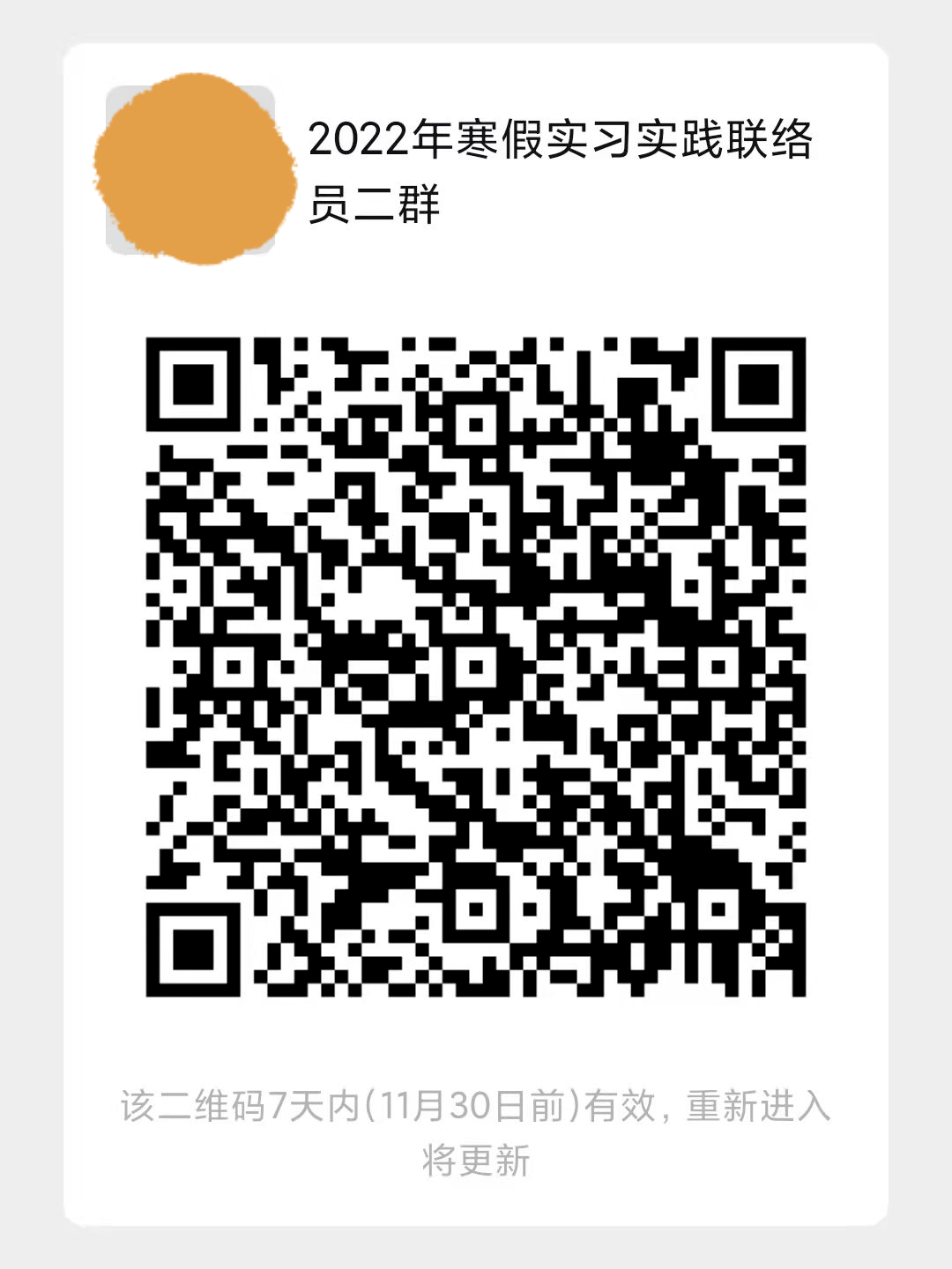 家庭住址位于安丘市、高密市、昌邑市、临朐县、昌乐县、滨海区、峡山区的同学,可扫描二维码加入2022年寒假实习实践活动联络员二群。