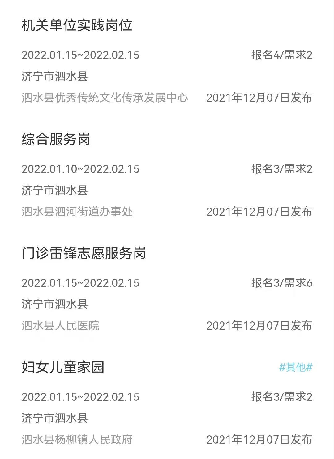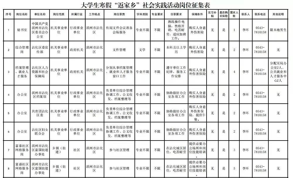 本期团团为大家整理了滨州市与泗水县两个地方的2022年寒假“返家乡”实践实习岗位信息。