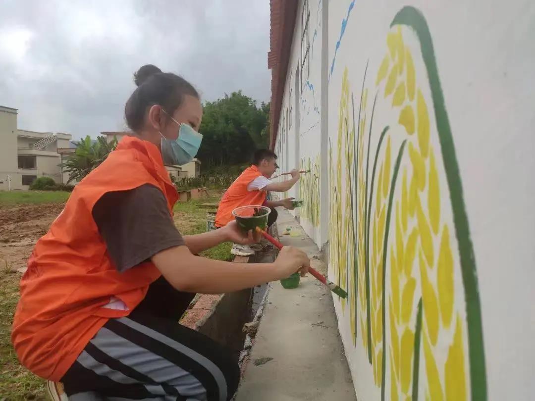 返家乡学生参与“我的家乡我建设”美丽乡村墙绘活动