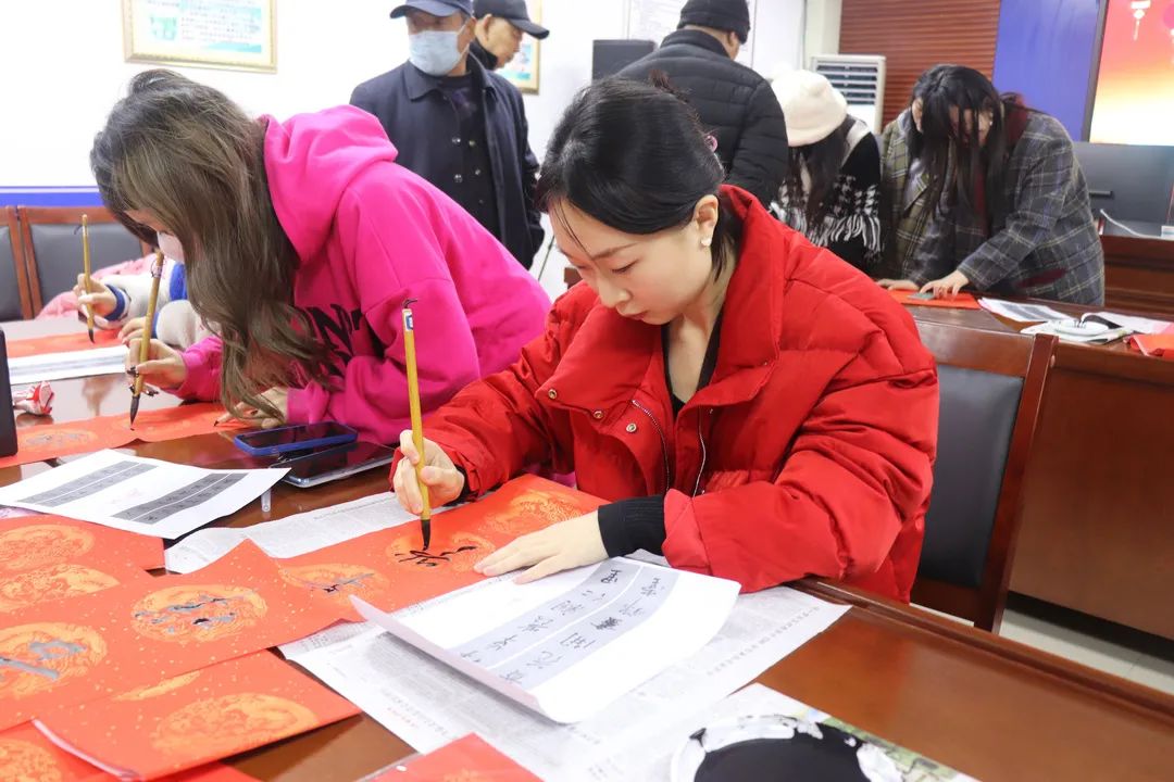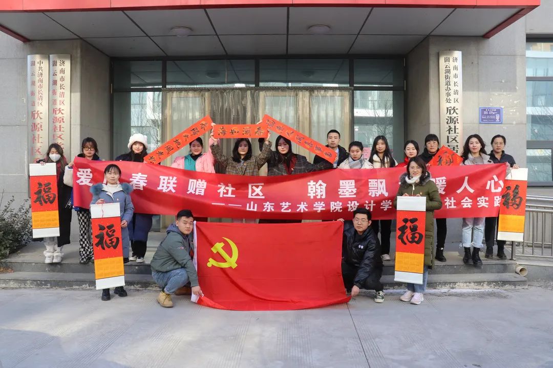 12月30日上午,由学生党支部党员和“青年思享者协会”成员组成的设计学院寒假社会实践团队一行14人,在回凤瑾、邱秀敏老师的带领下,来到长清区崮云湖街道欣源社区,开展了“爱心春联赠社区 翰墨飘香暖人心”寒假社会实践活动。