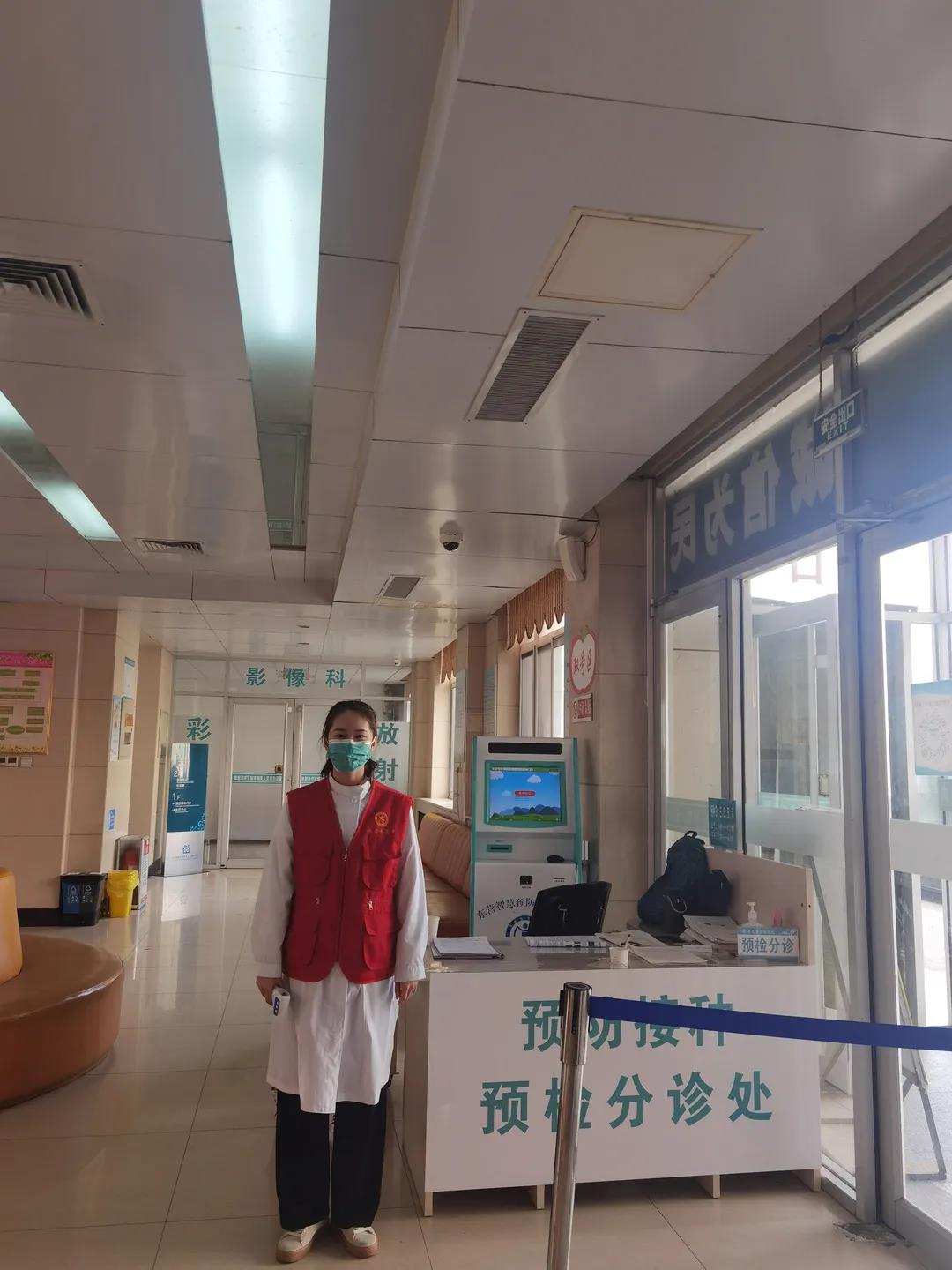 我主要负责测量体温、查验健康码、帮助人们预约取号、分发新冠疫苗宣传单、打扫卫生等一系列工作。一天的工作下来,我感到十分疲惫,但一想到医务工作人员每天都这么辛苦,我觉得自己的选择是正确的,能为医院的疫情防控工作贡献出自己的一份力量,我感到十分自豪。