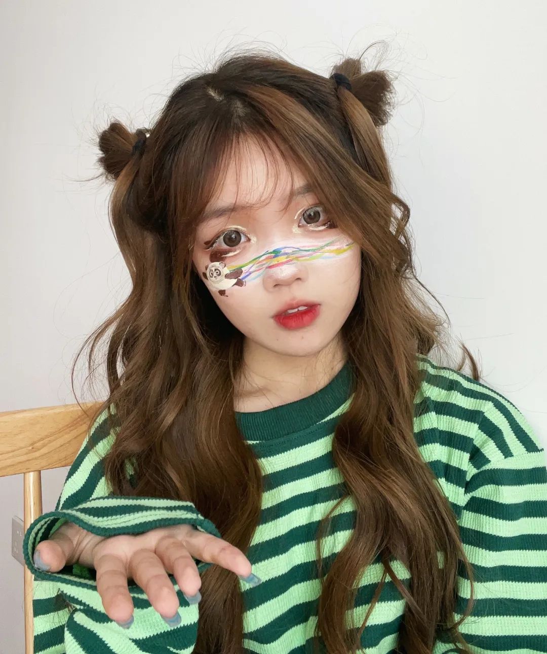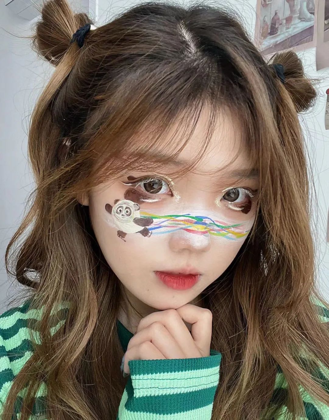 山艺学子用双手勾勒想象,用色彩留住浪漫,将北京冬奥会吉祥物冰墩墩元素融入到彩绘妆容之中,用色彩和图案展现出了冬奥魅力,表达了我们对北京冬奥会的美好祝愿,借此机会发扬了国际艺术交流学院的专业风采,同时也传播了北京冬奥会的精神文化。