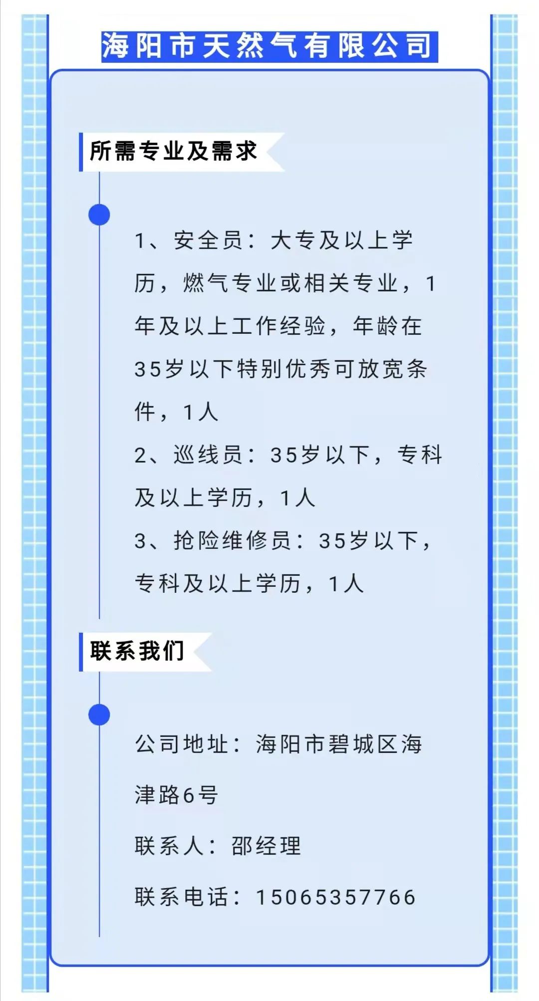 今天,团团为大家整理了潍坊市、滨州市无棣县、烟台市海阳市、潍坊市昌邑市多家企业单位的人才招聘信息。快跟着团团一起来看一下吧~