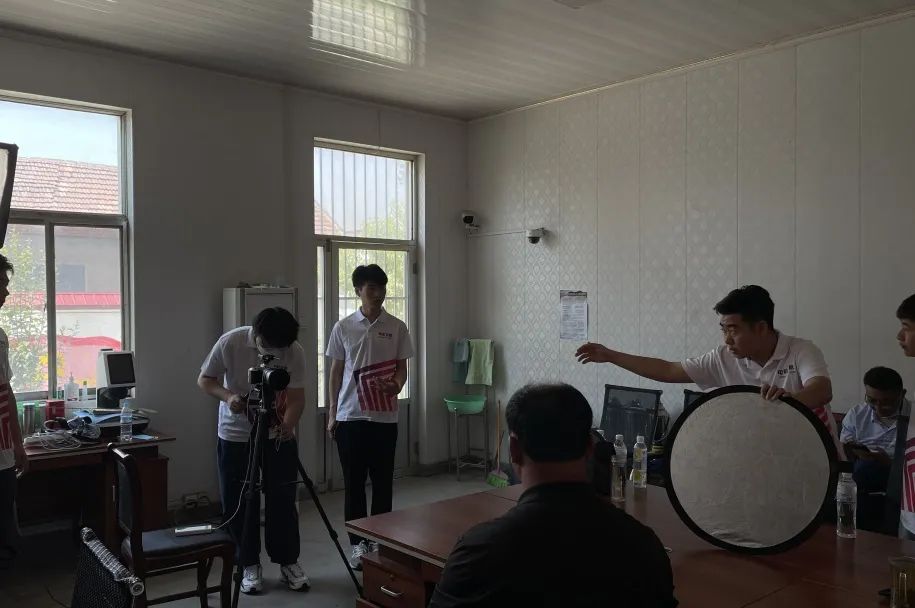 活动中,电影学院“青春光影”志愿服务团一行在村党支部书记的带领下参观了叶庄村与芦南村的村容村貌,并在村委会议室就乡村振兴建设、党支部建设新局面等问题进行了深入的座谈与交流。村干部为我院师生详细介绍了近年来新农村建设及乡村文化建设等工作的开展情况与取得的成果,通过村干部的讲解与实地参观,参加本次活动的师生纷纷惊叹于如今乡村发展的速度和成果。此外,校地双方就今后开展进一步合作达成意向,电影学院将发挥专业优势,持续拍摄记录新时代下叶庄村的发展变迁历程与芦南村的建设历程,通过影像、绘画等多种艺术形式,留存叶庄村与芦南村“乡村振兴”过程中的珍贵瞬间。随后,电影学院“青春光影”志愿服务团在村庄周边进行走访调研,结合村庄的实际情况就地取材,开展第一阶段的拍摄工作。在叶庄村,志愿服务团将航拍、地拍等形式相结合,全景式记录下叶庄村现阶段的真实风貌;在芦南村,通过采访村民与村干部,详细了解近年来芦南村的发展变化,并拍摄牡丹休闲观光园、云台寺郊野公园、云台山田园综合体智慧大棚、山楂体验园等当地新建设施,全面展现芦南村在新时代建设发展及乡村振兴新成果。