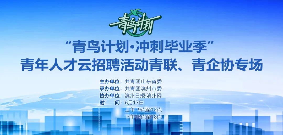 为贯彻落实全国稳就业、高校毕业生就业创业工作会议精神,按照全省稳就业工作部署,由共青团山东省委组织实施开展“青鸟计划·冲刺毕业季”专项行动,此次活动分为华为人才联盟、国有企业、专精特新“小巨人”、医养健康、青企协等5个专场招聘,针对不同专业的大学生提供优质岗位,全面促进我省大学生就业工作。第三场青联、青企协专场招聘由共青团滨州市委承办,将于2022年6月17日9:00启动。