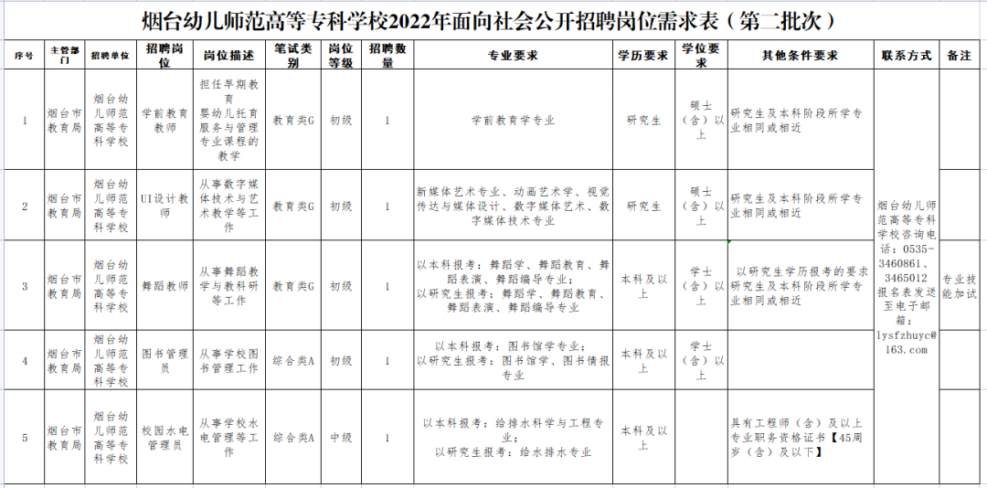 烟台幼儿师范高等专科学校烟台幼儿师范高等专科学校面向社会招聘优秀人才,设置招聘岗位5个,招聘计划共计5个。