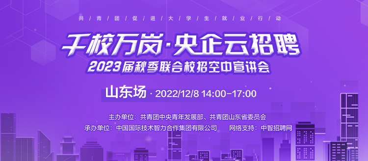 12月8日14点“千校万岗•央企云招聘”2023届秋季联合校招空中宣讲会,山东专场,“职”等你来!