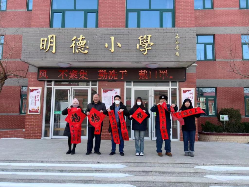 虎啸辞旧岁,兔跃报新春。春联,不仅仅饱含着迎祥纳福的美好愿望,还传递着民俗文化里弥香的年味,春节的仪式感也是从一副新春对联开始。魏书记带领我到了三朱村,为三朱村的乡亲们送了春联,拿着春联的老人们脸上洋溢着幸福的微笑。我还帮助乡亲们贴春联,并讲述了贴春联的正确方法。随后,我们来到了三朱村明德小学,在程校长和几位老师的接待下,我们一起参观了校园,并跟一位了解书法的老师进行交流,从这位老师的口中我加深了对民间书法艺术的理解。