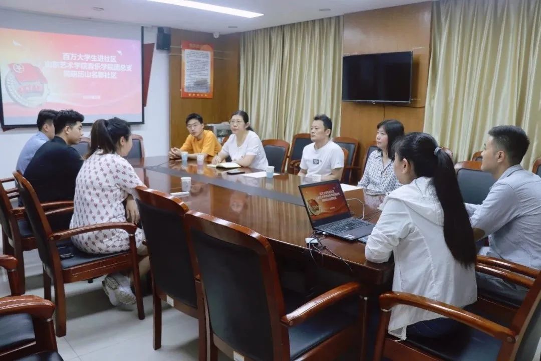 贾俊建介绍了音乐学院“泉城义工”大学生艺术团、“青音”研究生志愿服务团的相关志愿服务开展情况,同时对于社区开展居民活动需要的支持进行细致调研,表示学院团总支将依托“泉城义工”大学生艺术团、“青音”研究生志愿服务团两个志愿服务组织和学生会组织,充分发动班级团支部的力量,协助社区开展相关工作,为社区提供高质量的艺术服务,为学生提供锻炼的平台,与社区一起共同打造协同育人大格局