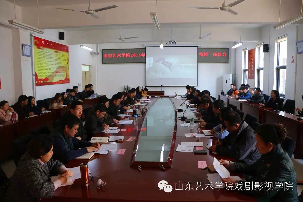 山东艺术学院2016年“弘扬雷锋精神创建文明校园"座谈会于3月4日在长清校区办公楼二楼会议室召开。座谈会对2015年志愿服务表现突出的先进集体和先进个人进行了表彰。戏剧影视学院“剧·爱”志愿服务团队获得先进集体荣誉称号,吴天洋、苏世政等十二名同学获得先进个人荣誉称号。会议对学习雷锋精神,开展志愿服务具体展开座谈。戏剧影视学院党总支副书记董亮在会上介绍了戏剧影视学院开展志愿服务的具体情况。